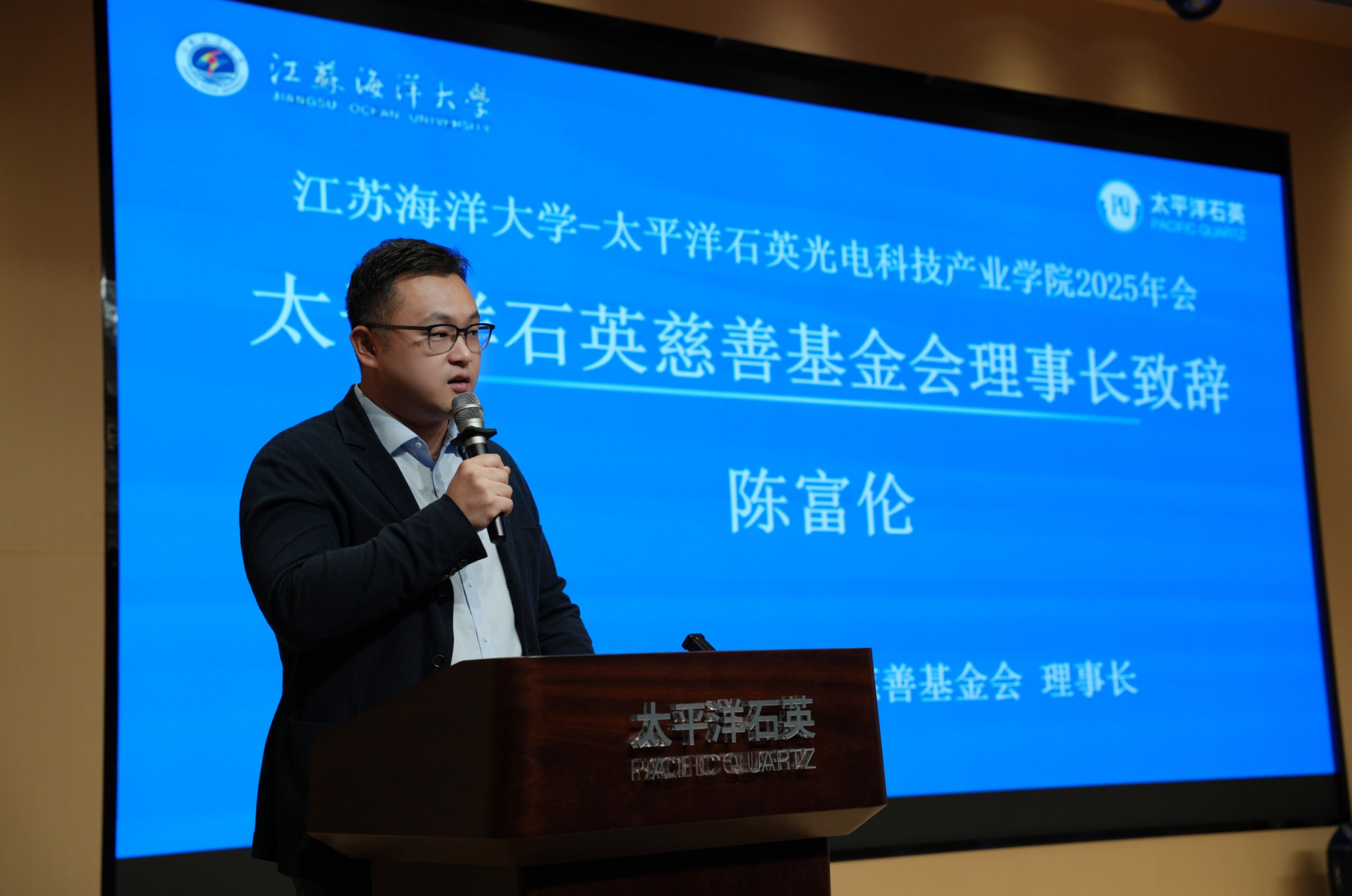 江苏太平洋石英股份有限公司总裁陈富伦作总结发言,高度评价产业学院建设成果。他表示,企业将持续发挥“人才培养真实战场”作用,通过提供前沿技术、实战项目与行业标准,深度参与课程设计与师资共建,推动“教育赋能产业,产业反哺教育”理念落地,为校企协同育人注入更多产业资源。