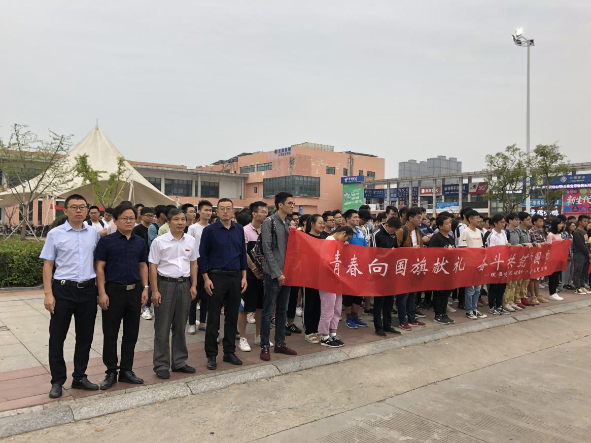 迎着朝阳,国旗护卫队迈着铿锵有力的步伐走向升旗台,在庄严雄壮的国歌声中,鲜艳的五星红旗冉冉升起。国旗下,全体师生肃穆地面对国旗行注目礼,向飘扬的五星红旗致以崇高的敬意。刚毅的脸庞和坚定的目光彰显出理院人牢记使命勇于担当的信心和决心。